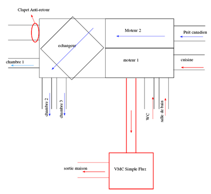 flux et en ajoutant un clapet anti-retour à la sortie de la V.M.C. doubles
