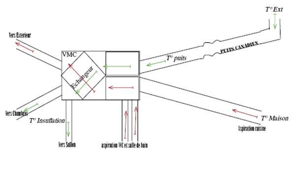 puit canadien va diminuer la température, de 5°on arrive à 18°, hors la V. M. C.